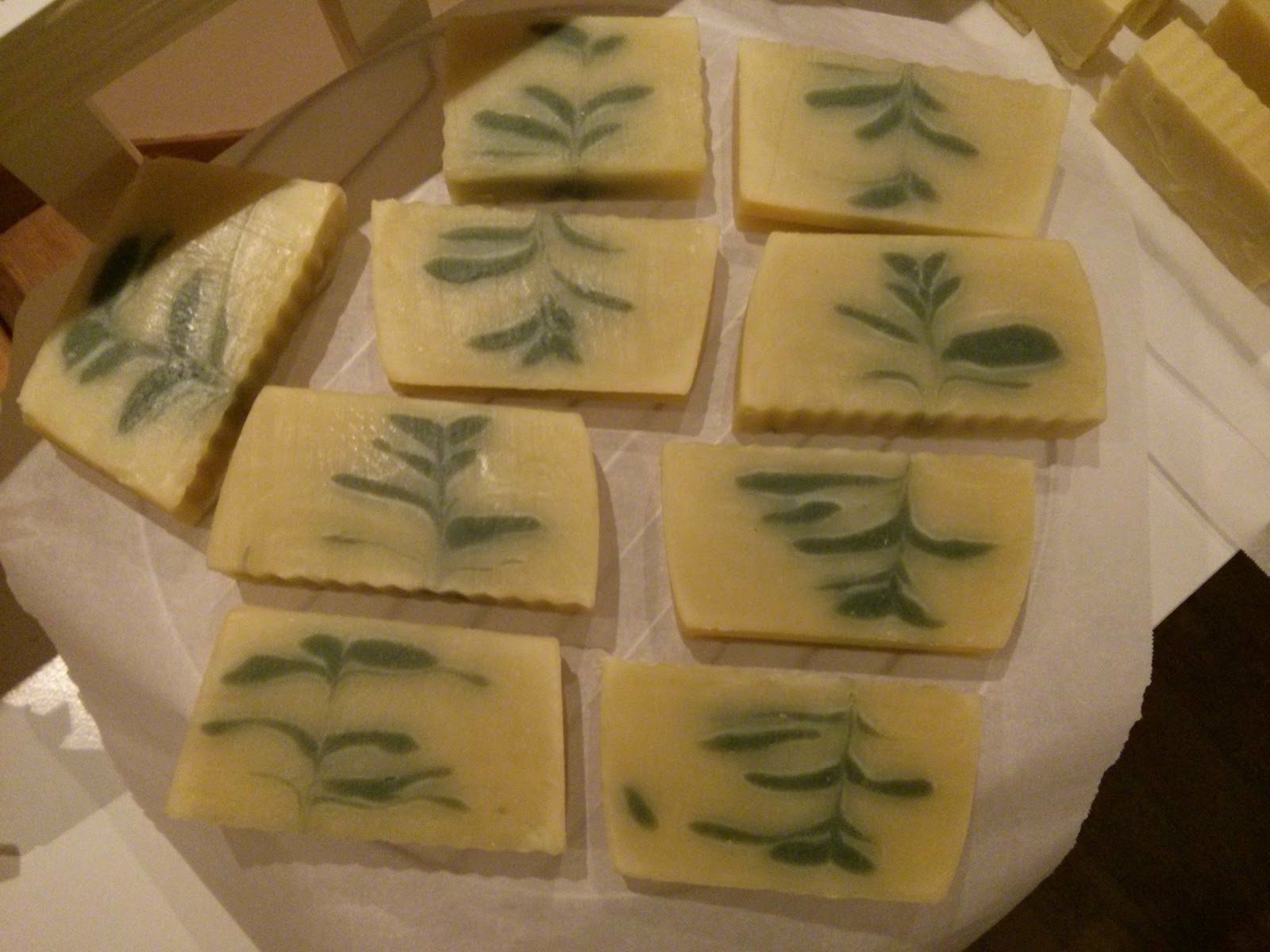 26 heures plus tard, j'ai démoulé et coupé pour commencer la cure. Autant le dire tout de suite, j'aurais dû attendre un peu plus, mais bon, ce qui est fait est fait! Pour la forme, on repassera, mais à ce stade-ci, ça m'est égal... Tant qu'il mousse, lave et hydrate, je serai contente... Ce savon sera prêt pour la rentrée.
